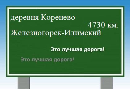 трассы из деревни Коренево в Железногорск-Илимский по автомобильной дороге составляет