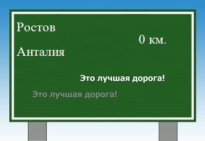 сколько километров от Ростова до Анталии. При построении маршрута используются максимально скоростные автотрассы. На интерактивной карте выбранная вами схема проезда показана жирной синей линией. Может использоваться печатная копия предложенной здесь