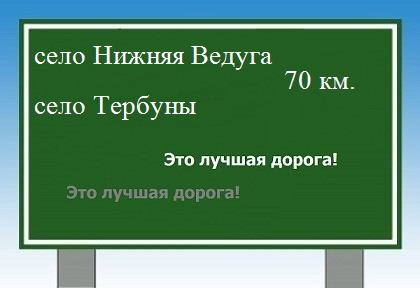 Расстояние между селом Нижняя Ведуга и селом Тербуны составляет