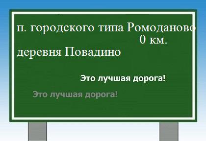 расстояния между поселок городского типа Ромоданово и деревня Повадино , составляет